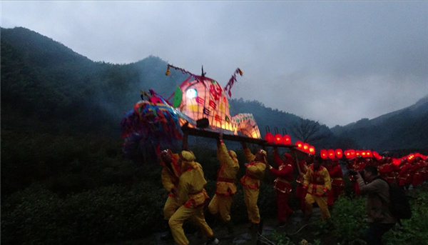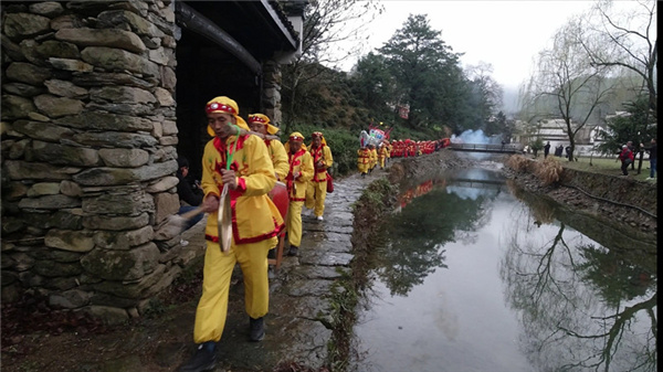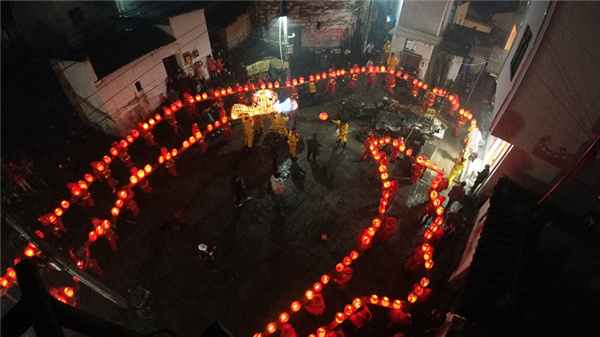 2月26日,元宵節。安徽休寧縣鶴城鄉右龍村家家戶戶齊上陣,自發舞起百餘米長的板凳龍,歡度元宵佳節,吸引了周邊省市的遊客、攝影愛好者及當地群眾前來觀看。