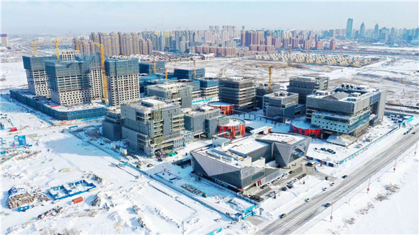 一年春作首,萬事競爭先。記者見到,牛年剛至,深哈產業園科創總部項目施工現場一片繁忙景象,切割聲、捶打聲與機器轟鳴聲,奏響了深哈產業園建設的「復工曲」。項目現場施工場面火熱,近300多名作業人員拆除越冬維護、安裝幕牆玻璃以及吊裝鋼結構構件。據悉,隨着工程進展,預計高峰期作業人員數量將達到3500餘人。