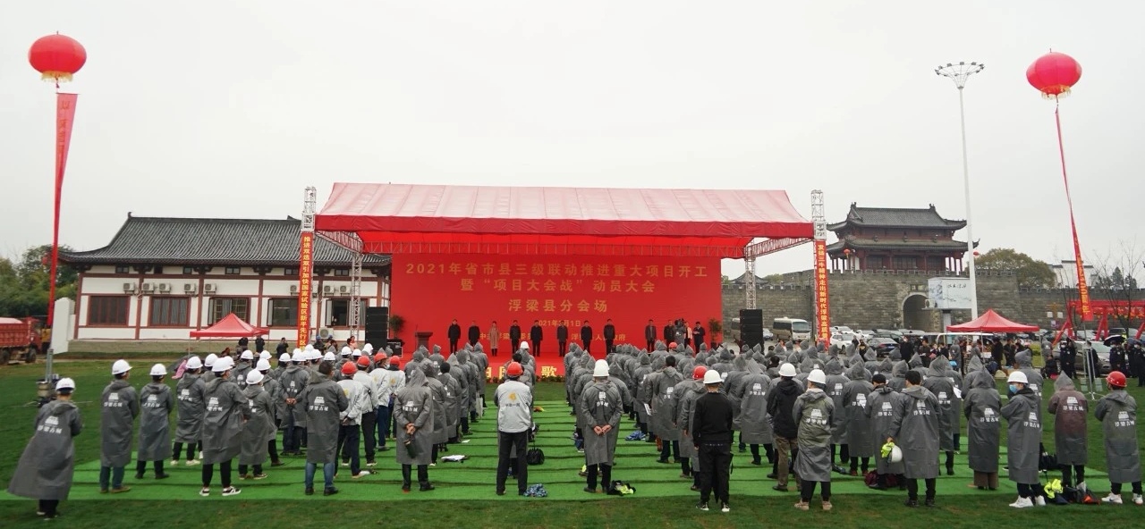 3月1日,在2021年省市縣三級聯動推進重大项目開工暨“项目大會戰”動員大會浮梁現場,縣委書記胡春平一聲令下, 2021年省市縣三級重大项目開工啟動,吹響了全縣“项目建設提速年”衝鋒號,打響了強力推進“项目大會戰”,掀起了项目建設新熱潮。程新宇、劉文平、張永進、陳國清、張金水、胡麗萍、葉青、程文芳、查秋玲、沈昆、鄭偉秀等縣四套班子領導,縣委各部門、縣直各單位主要領導,各鄉鎮黨政主要負責人,部分重點项目建設和施工單位代表等,出席開工儀式。