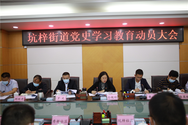 3月4日,深圳市坪山區坑梓街道召開全街道黨史教育動員大會,深入學習貫徹習近平總書記在黨史學習教育動員大會上的重要講話精神和黨中央《關於在全黨開展黨史學習教育的通知》精神,貫徹落實全省、全市、全區黨史學習教育動員大會精神,對街道黨史學習教育工作進行全面動員部署。會議由街道黨工委書記孫艷瓊主持,街道領導班子成員、各部門負責人、各社區黨委書記參加會議。