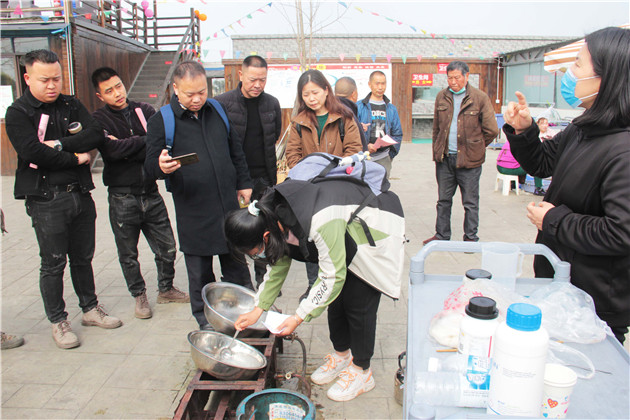 中國農業大學無人機研發團隊和中國農業科學院蜜蜂研究所的專家現場演示液體花粉配製方法;