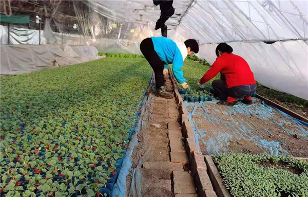 九台區上河灣鎮上河灣村村民在蔬菜大棚內育苗