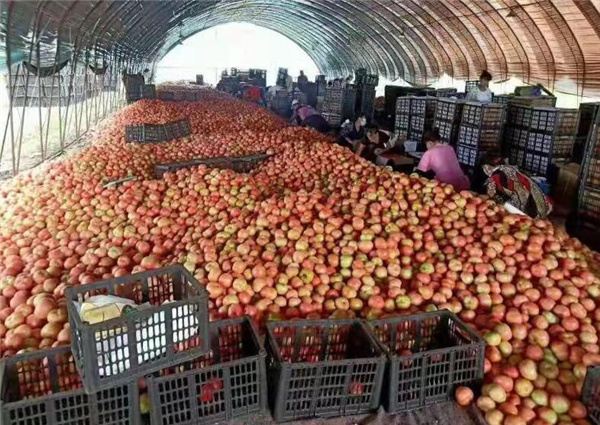 九台區上河灣鎮上河灣村蔬菜大棚內蘋果收穫的景象