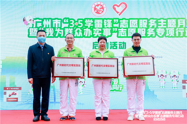 儀式上,廣州市文明辦為廣州志願驛站頒發了「新時代文明實踐站」牌匾。環市東路志願驛站站長康金華、團一大志願驛站站長甘永樂、一五七醫院志願驛站站長梁修飛分別分享了自己的志願服務經歷和感受。
