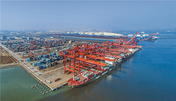 湛江深度參與西部陸海新通道建設,致力建設港 口型國家物流樞紐。圖為湛江港寶滿集裝箱碼頭。 湛江港供圖