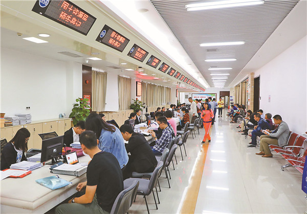 湛江在改革創新、優化服務、簡政提效方面持續發 力。圖為市行政服務中心提速增效,為群眾提供高質量 服務。 張鋒鋒攝