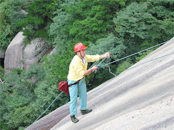 “文明山”“衛生山”美譽的背後,是無數環衛人員的辛苦工作和付出。李培生是玉屏環衛所領班,同時也是一名週邊放繩工,為確保山上垃圾日產日清,他和同事通常都要忙到晚上8、9點。