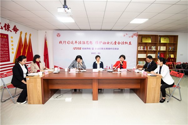今年3月8日是第111個「三八國際婦女節」,廣州市婦聯有序開展婦聯主席接聽熱線、民生座談會等 「三八」維權周活動。8日上午,在花都區秀全街黨群服務中心舉辦了「踐行習近平法治思想 維護婦女兒童合法權益」——省市區三級婦聯主席接聽熱線活動。廣東省婦聯黨組成員、副主席方賽妹,廣州市婦聯黨組書記、主席劉梅,花都區婦聯黨組書記、主席王慧濤,集中接聽12338等維權熱線,與廣大婦女群眾進行對話溝通,傾聽婦女心聲,了解婦聯訴求,提供在線諮詢和維權服務。