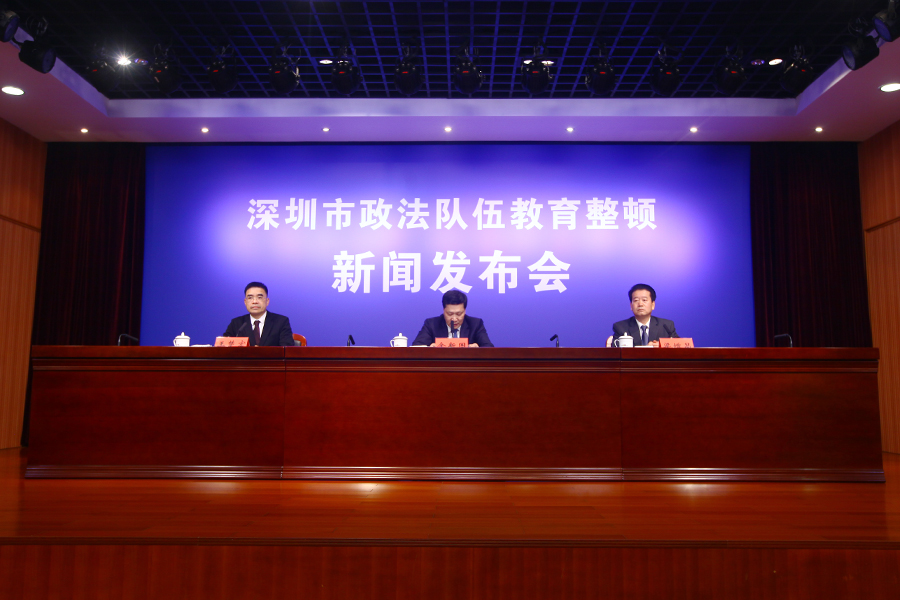 深圳市委常委、政法委書記、市委政法隊伍教育整頓工作領導小組常務副組長余新國,深圳市委政法委常務副書記、市委政法隊伍教育整頓工作領導小組辦公室常務副主任梁增昌等參加發佈會。