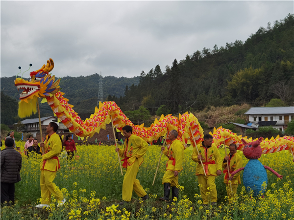 開幕式在開場秀舞龍中拉開帷幕,記者在現場看到,一條黃金“巨龍”在金黃色的油菜花田中起伏“遊動”,靈動和氣勢十足。作為首屆油菜花鄉村旅遊節的重頭戲之一,傳統舞龍表演吸引了眾多遊客駐足觀賞。舞龍秀結束後。萬眾矚目的大型文藝演出精彩上演,來自深圳市福田區團結藝術團的十幾位藝術家老師們,用嘹亮動聽的歌聲點燃現場,舞蹈演員們更是用優美的舞姿,盡情展示油菜花田的柔情和美麗。還有玄妙入神的魔術和趣味橫生的小品節目,特邀村民的小朋友們上臺參與互動,而氣勢磅礴的馬頭琴獨奏《萬馬奔騰》,更是把現場的氣氛推向高潮,引的全場滿堂喝彩。由港深珠澳攝影聯盟秦軍校主席親自帶隊的十幾位資深攝影家也親臨現場采風,“長槍短炮”的“哢哢聲”,讓現場的村民們大開眼界。精彩的文藝表演結束後,遊客穿過一望無際的油菜花田,來到了永安圍,典型的珠江流域簷大瓦頂圍屋,引得遊客紛紛駐足打卡。更有搶繡球、舞龍表演等民俗文化活動表演,讓傳統文化與現代文明相交匯,讓圍屋亮了起來、動了起來、活了起來。如果你以為這樣就結束,那可不儘然。在一大片油菜花中穿行、打卡網紅景點,站在那裏,你就是油畫中的“模特”,也讓攝影家們有了用武之地,隨手一拍都是大片,他們爭先恐後記錄下這春天的一抹金黃~悠揚的音樂在油菜花田裏蕩漾,閉上眼睛,靜靜聆聽,此情此景,仿佛讓人穿越到浪漫的電影裏~。據主辦方巋美山鎮領導介紹,將在今年年底開通的高鐵,從深圳北到定南僅僅需要55分鐘,屆時,定南將成為名副其實粵港澳大灣區的“後花園”。