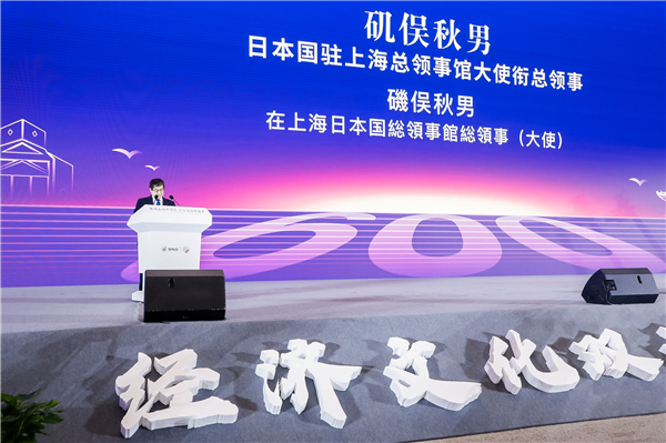 日本駐上海總領事館大使銜總領事磯俁秋男現場致辭
