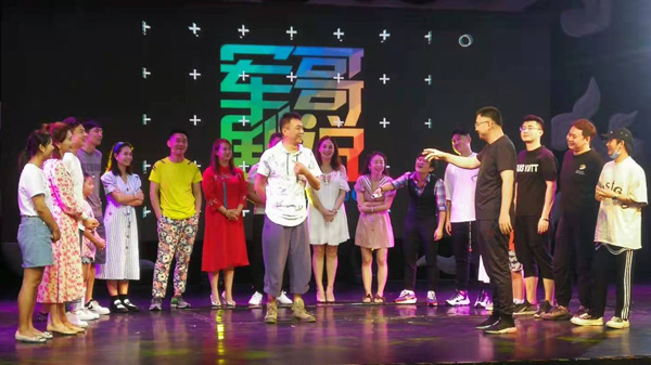 邸敘然導演在給《軍哥劇說》演員們說戲。