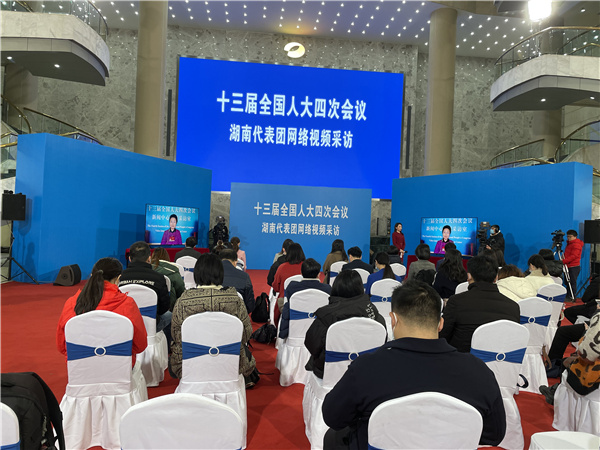 十三屆全國人大四次會議湖南代表團舉行第二場網絡視頻採訪現場。