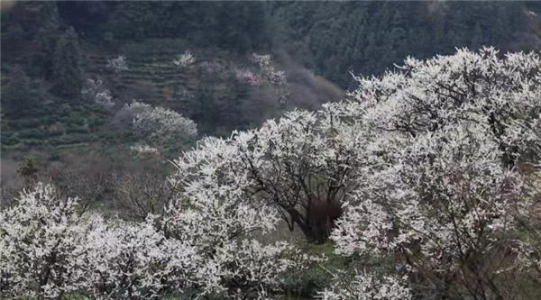 從空中俯瞰,漫山遍野、千樹萬樹的李花如雲似雪,沿著山勢伸向遠方,這些綿延山頭的李花就像是潔白的婚紗,把這個美麗的小山村打扮成一個新娘,楚楚動人、儀態萬方。近看,田間地頭、村頭寨尾、溪旁路邊、山上山下,無一不見李樹的身影,盛開的李花挨挨擠擠地簇擁著,組成了這香的世界、花的海洋,一如覆蓋了團團白雪,婀娜多姿,暗香浮動,與徽派相映成趣。不少市民和遊客慕名而來,感受著人在畫中游的愜意與美好。