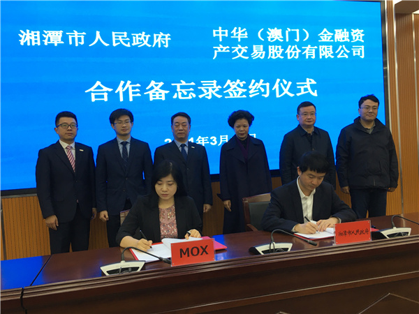 春暖花開,草長鶯飛。3月12日,湘潭市人民政府與中華(澳門)金融資產交易股份有限公司合作備忘錄簽約活動在市政府新聞發佈廳舉行。市委副書記、市長張迎春、中華(澳門)金融資產交易股份有限公司(簡稱MOX)執行委員會主席兼總裁張維春出席會議並講話。