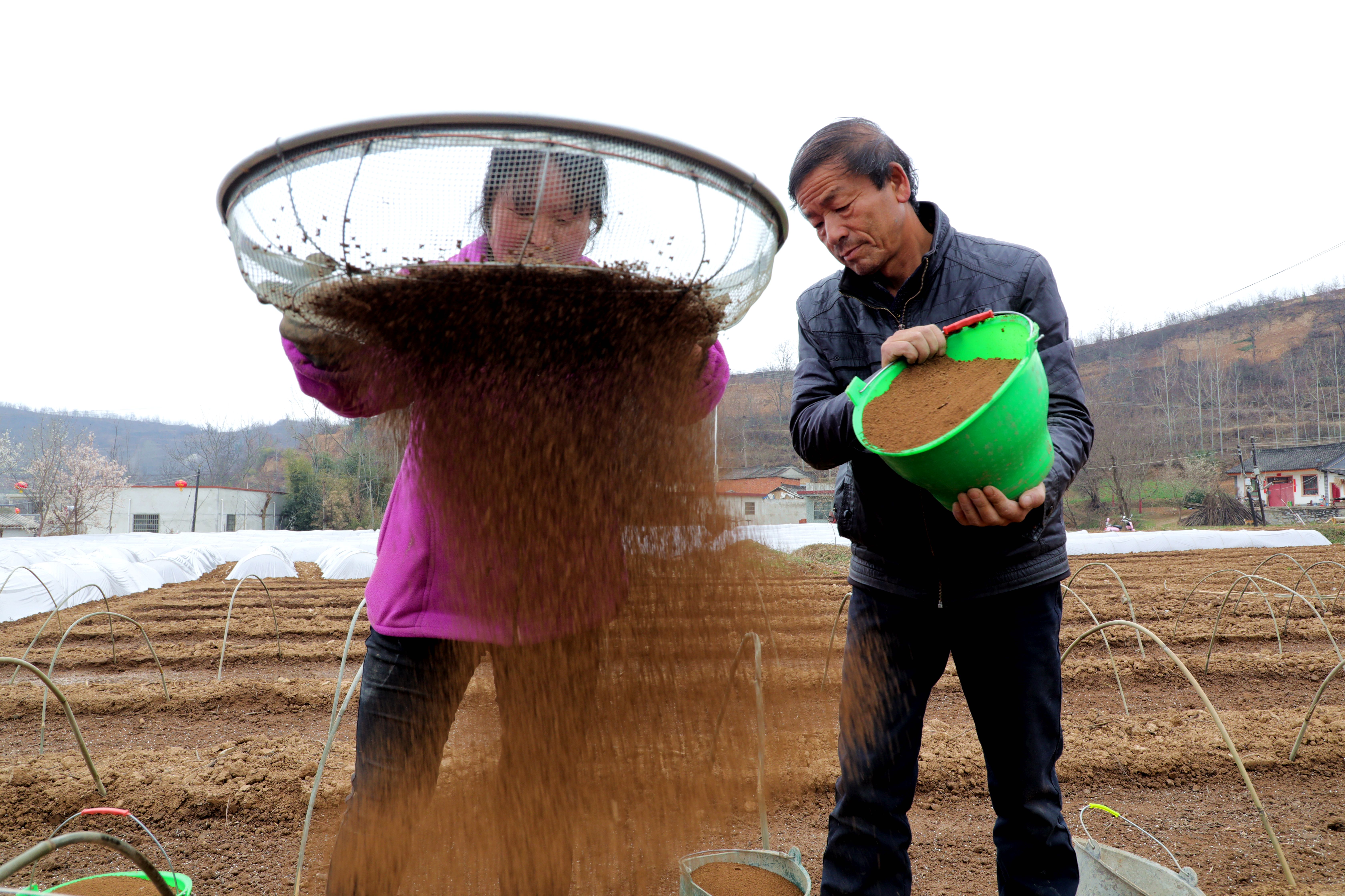 播種、覆土 、澆水、搭建拱棚……近日,記者一行走進甘肅省成縣陳院鎮玉泉村萬壽菊育苗基地,大傢伙兒正搶抓農時,進行萬壽菊育苗。