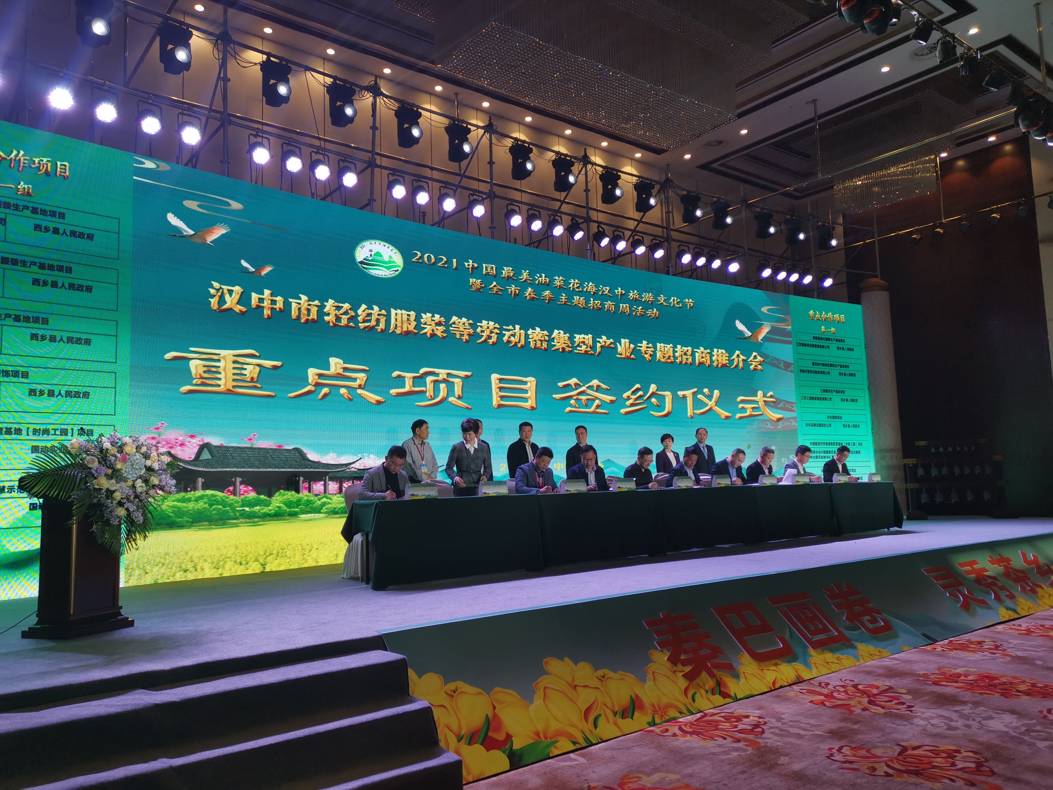 漢中市輕紡服裝勞動密集型產業發展專題招商推介會簽約現場