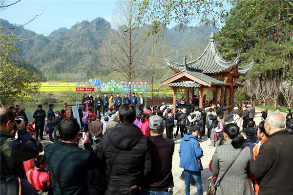 3月14日,安徽黃山市休寧縣“湖光山色”花事文化旅遊暨鄉村勸農大會在南坑村舉辦。來自全國各地的攝影愛好者、自駕遊客一起參加大會開幕式。