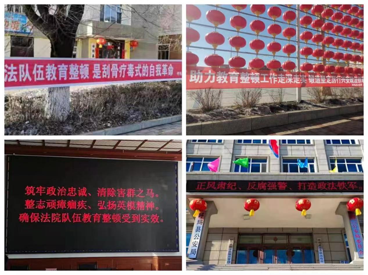 為進一步推進政法隊伍教育整頓工作深入開展,激發政法隊伍的政治自覺、思想自覺、行動自覺,打造全員覆蓋、人人提升的良好氛圍,黑龍江省大興安嶺地區呼瑪縣政法各單位結合工作實際,強化宣傳引導,全力開展了一系列形式多樣的宣傳活動,助力隊伍教育整頓工作走深走實,營造向社會正面宣傳、開門搞教育整頓的濃厚氛圍。