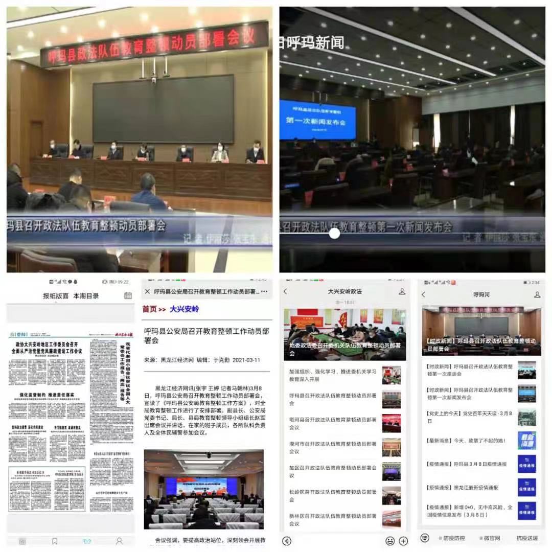 二是通過新聞媒體、政府網站、新媒體平台公眾號等載體大力宣傳報道教育整頓的部署要求、進展情況、實際效果;設立舉報信(郵)箱、公佈舉報電話等形式讓群眾監督,由群眾評判,及時向社會公開教育整頓的工作進展情況和成效。截止目前,呼瑪縣政法隊伍教育整頓辦公室及政法各單位在地、縣兩級,各類媒體平台播發數達到30餘篇。同時依託本單位微信公眾號,設置《政法隊伍教育整頓每日問答》專欄,強化新聞外宣報道,充分展示了呼瑪縣政法隊伍正風肅紀、激濁揚清的堅定決心。
