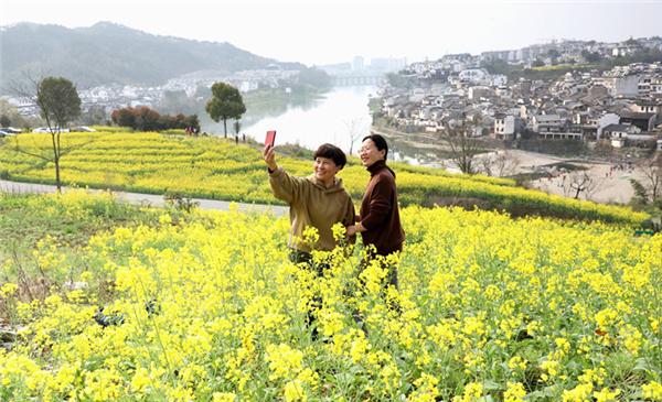 3月13日,安徽黃山市歙縣徽城鎮漁梁古村落周邊油菜花盛開,愛花拍客追花攝美景。