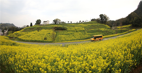 油菜花開山水間 皖歙縣春色如畫