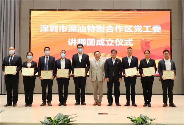 3 月 15 日,深圳市深汕特別合作區(簡稱 「深汕合作區 」)舉行黨工委講師團揭牌成立儀式,邀請特聘講師現場講授理論宣講方法,並部署全年理論宣講工作。這是深汕合作區貫徹落實中央、省、市有關精神,推動理想信念教育常態化制度化,推動黨的理論政策學習和 「 四史 」教育走深走心走實的重要舉措,將開創基層理論宣傳的新局面,進一步引導全區廣大黨員幹部群眾用黨的科學理論武裝頭腦、指導實踐、推動工作,向建黨 100 周年和建區 10 周年獻禮。
