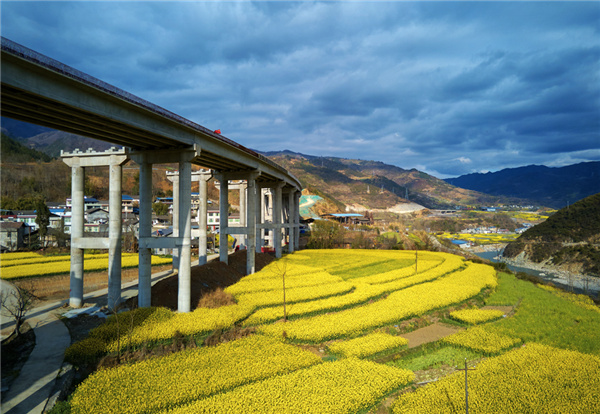 陽春三月,春光明媚,油菜花已絢爛上線,不經意間,目光所至已是金黃遍野,美景就在身旁。四川省平武縣的油菜花,層次分明,色彩斑斕,沒有平原的廣闊,卻多了份鄉村詩意田園。在平武,高速、菜花、山川、河流……建築美與自然美融為一體,形成了一道亮麗的風景線。