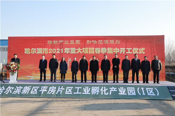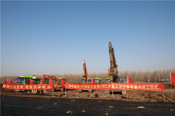 3月18日,哈爾濱市舉行2021年重大項目春季集中開工儀式,哈經開區、平房區設分會場。在運達風電產業園項目開工儀式現場,記者了解到,今年哈經開區、平房區共有市重點產業項目45個,總投資158.7億元,年度計劃投資31.7億元,運達風電、思哲睿手術機械人、機械人及智能製造產業園等35個重點項目實現春季開復工。