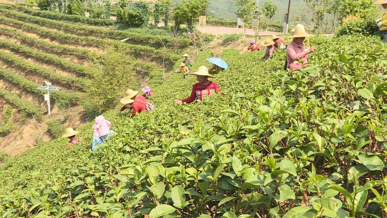 春回大地,茶葉飄香。廣東省紫金縣是河源市唯一入圍「中國茶葉百強縣」的縣區,4萬畝茶園又進入到一年一度的春茶採摘季。陽春三月,在位於廣東省紫金縣紫城鎮藍坑村的紫金客茶谷,漫山遍野的茶樹翠綠欲滴、長勢喜人,採茶工人正忙着摘取鮮嫩茶葉。