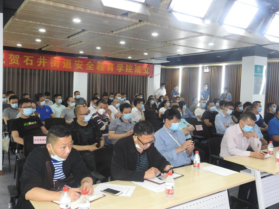 揭牌儀式後,安全教育學院安全第一課開班授課,轄區60家重點企業負責人接受落實安全生產主體責任的專項培訓。