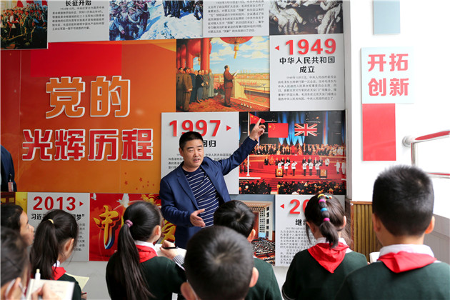 警鐘街小學校長曾安林在對學生們進行紅色教育 覃麗華 攝