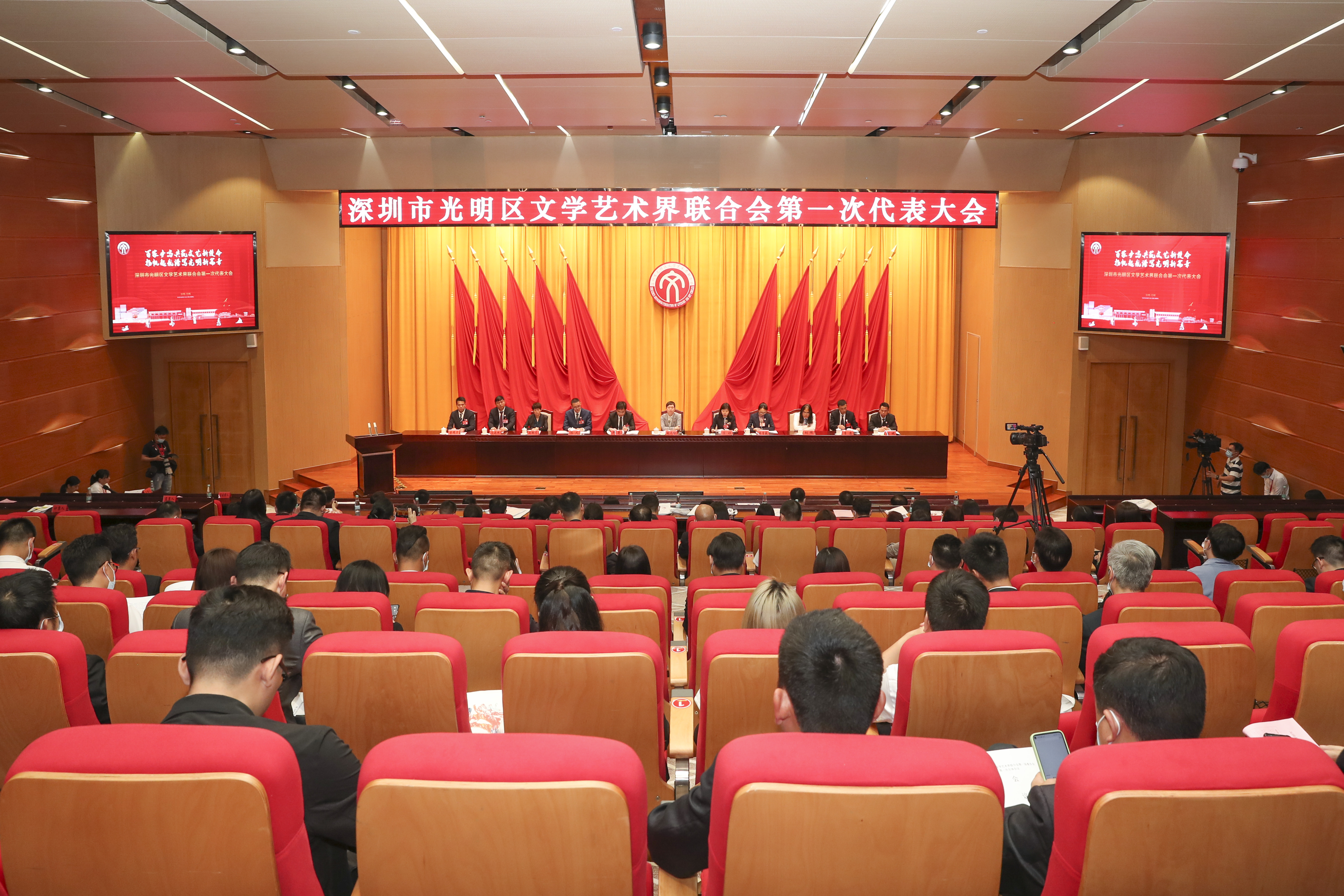 3月19日下午,深圳光明區文學藝術界聯合會第一次代表大會在光明區公共服務平台一樓會堂舉行。大會按照章程規定完成各項議程,投票選舉產生光明區文聯第一屆委員會主席團成員和委員,陳瑛當選為區文聯主席,馮英傑、劉斌、劉晚寸、安雪巍、嚴亮、李蘇、胡輝、曾耀華當選為副主席,陳凡當選為副主席兼秘書長;王勇等29人當選為委員會委員。
