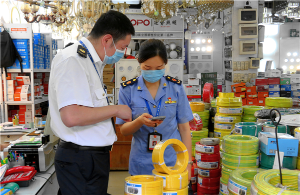 20日上午,針對媒體曝光的「問題電線電纜」情況,廣州市海珠區市場監管局50多名執法人員兵分六組突擊對轄區內粵景、和豐五金批發市場開展電線電纜專項整治行動。此次專項行動中,重點檢查電線電纜產品的標籤標識、產品名稱、規格型號、執行標準以及進貨台賬等內容,並現場開展執法抽樣檢查。