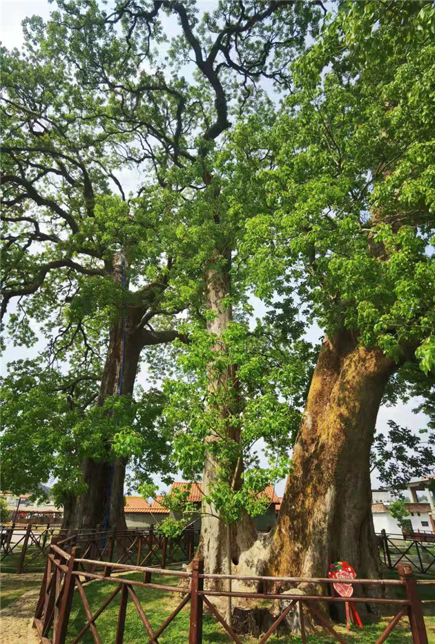 馬頭鎮秀田村里三棵400年樹齡的秋楓樹是村里獨特的風景