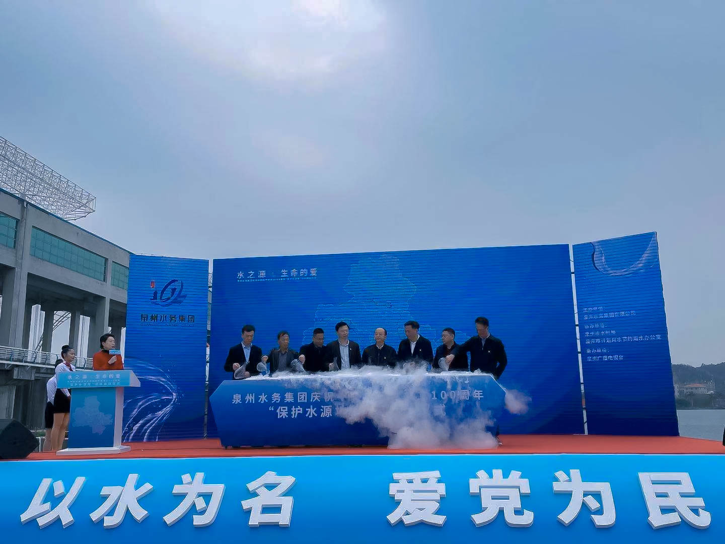 在萬眾期待中,泉州市政府、市直單位的8位領導、嘉賓共同啟動“水之源 生命的愛”主題水源地保護活動。在眾人見證下,市政府常務副市長洪自強把保護水源地志願者旗幟傳遞給了泉州水務集團董事長黃金順,期望新時代的水務人,從党的光輝歷史中堅定初心使命,以更加奮發有為的精神狀態為泉州發展注入更加充沛的“水動能”。