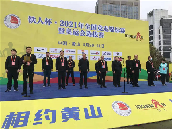 由中國田徑協會、安徽省體育局、黃山市人民政府共同主辦的鐵人杯·2021年全國競走錦標賽暨奧運會選拔賽日前在安徽黃山市鳴槍開賽。中國田徑協會主席段世傑出席開幕式並宣佈開賽;國家體育總局競體司司長劉國永,中國田徑協會副主席、秘書長於洪臣,安徽省體育局黨組書記、局長李軍,黃山市委副書記、市長孫勇,國家體育總局田徑運動管理中心副主任張俊昌,黃山市政府副市長程紅等出席開幕式。