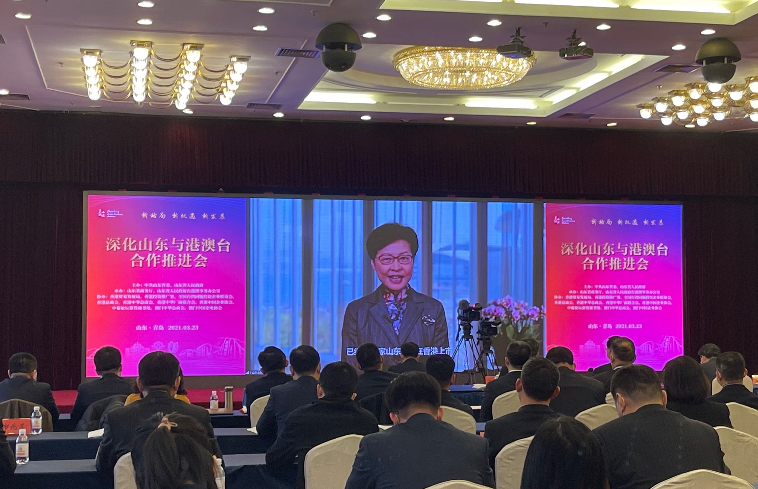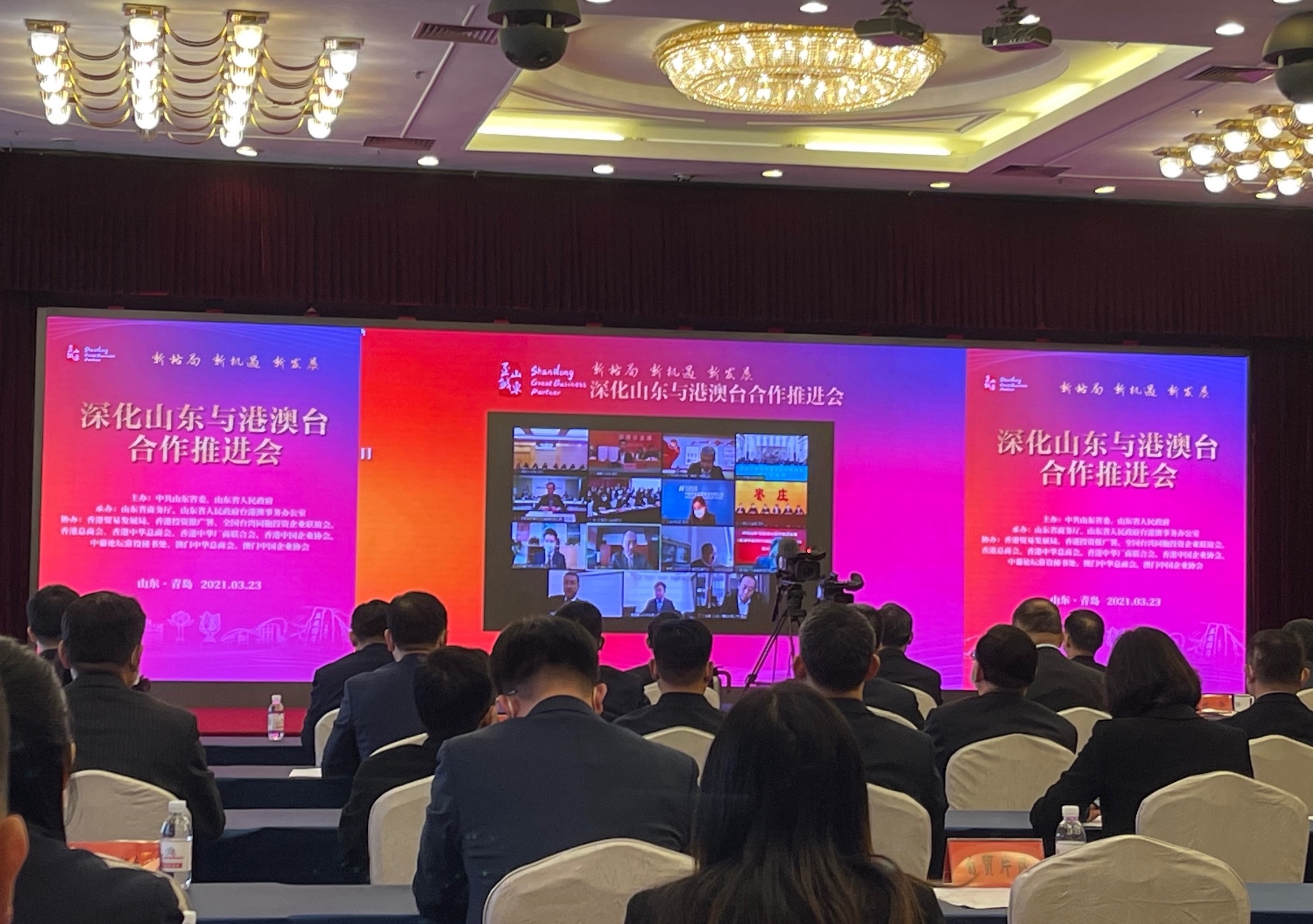 3月23日上午,「深化山東與港澳台合作推進會」在濟南市舉行,旨在為山東與香港、澳門、台灣進一步提升交流合作水平提供新機遇、搭建新平台。會議採用線上線下相結合的方式舉行,分為致辭與主旨演講、交流發言、線上重點項目簽約三個環節,青島市在市級機關會議中心設分會場。