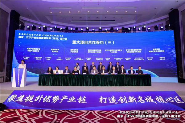 3月23日,江蘇省南京市江寧區赴深圳舉辦南京?江寧產業鏈高質量發展(深圳)推介會,圍繞「聚焦提升優勢產業鏈,打造創新名城核心區」主題,深入推介軟件和信息服務、新能源汽車、人工智能、智能電網、新醫藥與生命健康、集成電路、軌道交通、智能製造裝備等八大產業鏈,邀請大灣區客商到江寧投資興業,共同推動江寧奮力攀登「南京南部先進制造業基地」新高峰。江寧區區長嚴應駿,江寧開發區管委會主任張會祺,南京市投促局副局長成鳴鏑、市投促中心主任王威,以及江寧區開發園區、街道、部門相關負責人等參加。
