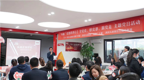 3月25日,四川天府新區黨群工作部、「兩新」工委與行政審批局聯合舉辦「兩新」黨建四季行——學黨史、感黨恩、跟黨走主題黨日活動,新區「兩新」黨組織共40餘名黨員幹部參加活動,共同回顧紅色歷史,傳承紅色基因,弘揚紅色精神。