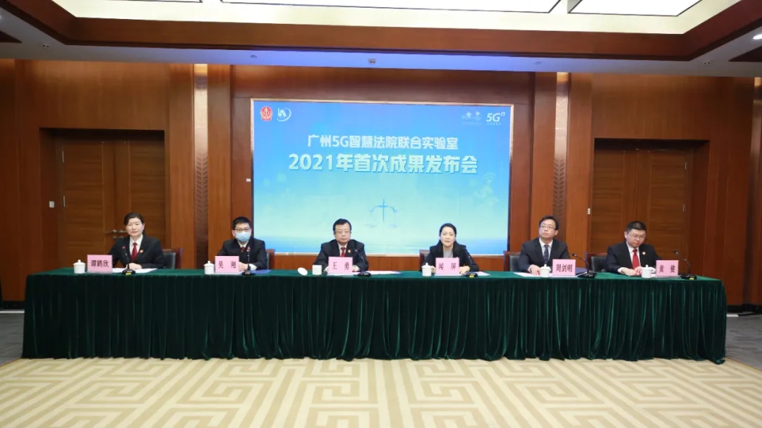 3月26日,廣州市中級人民法院舉辦廣州5G智慧法院實驗室啟用暨2021年成果發佈活動,首次發佈了5G智傳筆、5G隨身雲盒、5G庭審本和5G-LIM系統等創新成果。廣州中院黨組書記、院長王勇,黨組成員、副院長吳翔,廣州聯通黨委書記、總經理聞屏,黨委委員、副總經理周劍明等參加並講話。