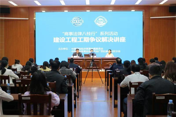 為滿足廣西自貿試驗區企業多元化解、快速化解和有效化解糾紛的需求,貿仲委和廣西貿促會聯合舉辦「商事法律八桂行」系列活動之「建設工程工期爭議解決講座」,採取線上線下相結合的模式,就建設工程合同中核心工期條款的理解和起草等企業關注的問題進行授課。