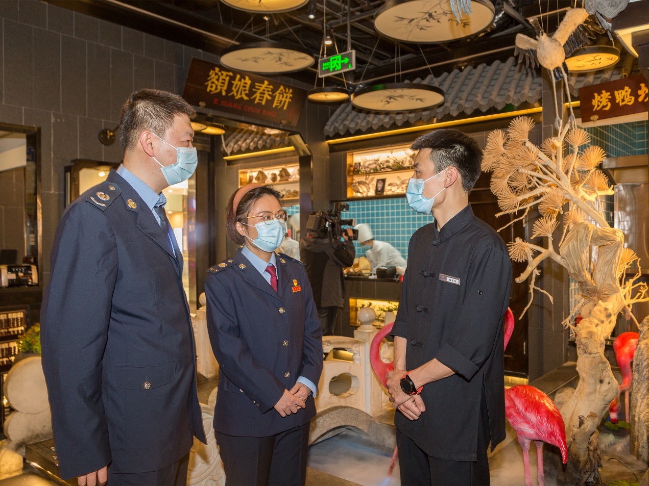 石家莊市長安區稅務局工作人員來到東勝廣場四樓額娘春餅飯店瞭解企業涉稅需求(徐國良攝)