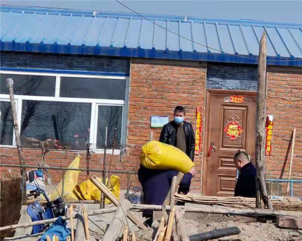 3月29日,在甘南縣中興鄉興勝村,甘南縣交通運輸局的黨員幹部們正在幫助建檔立卡戶英月美把晾曬在院子裏的玉米搬回倉庫。英月美老兩口年齡較大,乾重體力活身體有些吃不消,黨員幹部們的到來給他幫了大忙。
