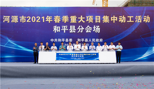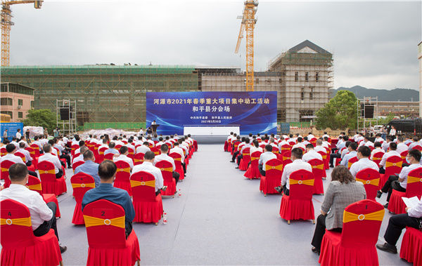 3月30日,河源市和平縣在高鐵和平東站站前廣場舉行2021年春季重大項目集中動工活動,22個重點項目集中動工,總投資90.6億元。其中,工業領域項目8個,總投資40億元;基礎設施領域項目3個,總投資 13.5 億元;房地產領域項目1個,總投資5億元;其他領域項目10個,總投資32.1億元。