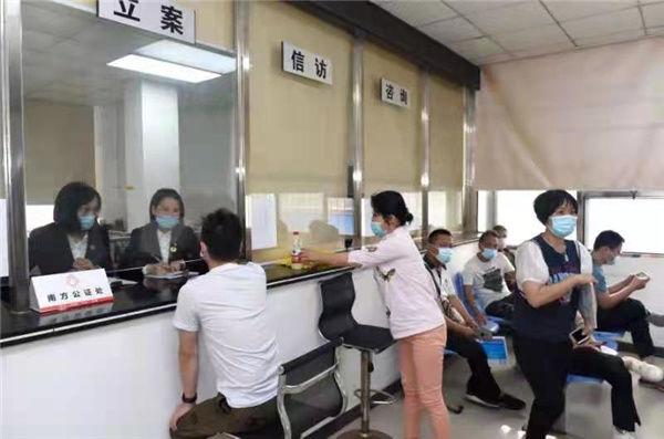 公證員(左)在解答當事人的諮詢(司法廳供圖)