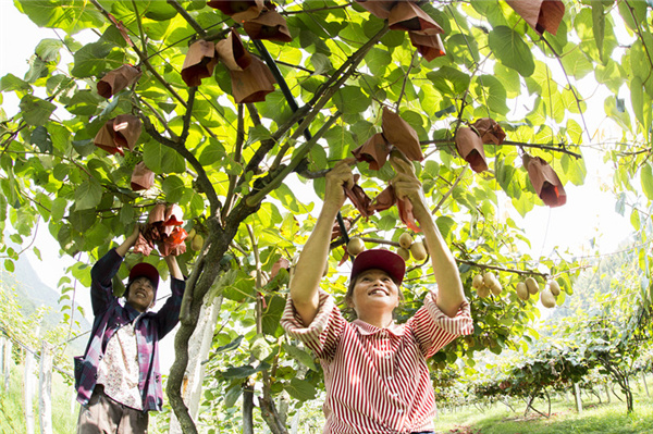 經過幾年的努力,基地進入了良性的發展軌道。目前,有固定員工12人,季節性工30餘人,除流轉土地的158戶村民每年能獲得13萬元土地流轉金收入外,每年在基地務工的村民還能獲得35萬元務工工資。去年,該基地有100畝獼猴桃園處於盛產期,豐收季節每畝獼猴桃產量有1400斤,以10元每斤價格,年收入達到140萬元。