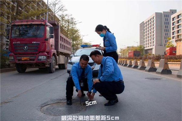 深汕檢察院聞令而動,立即組織第二檢察部對涉窨井蓋警情進行分析。師瑋檢察長親自帶隊實地勘查,發現涉案井蓋被損壞且深陷地面是造成所在路段事故頻發的主要原因,並對涉案井蓋進行拍照、測量以固定證據。