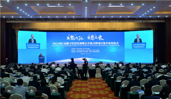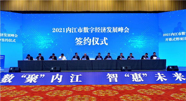3月30日上午,以「數『聚』內江 智『惠』未來」為主題的2021四川內江市數字經濟發展峰會開幕式暨項目集中簽約儀式成功舉行。