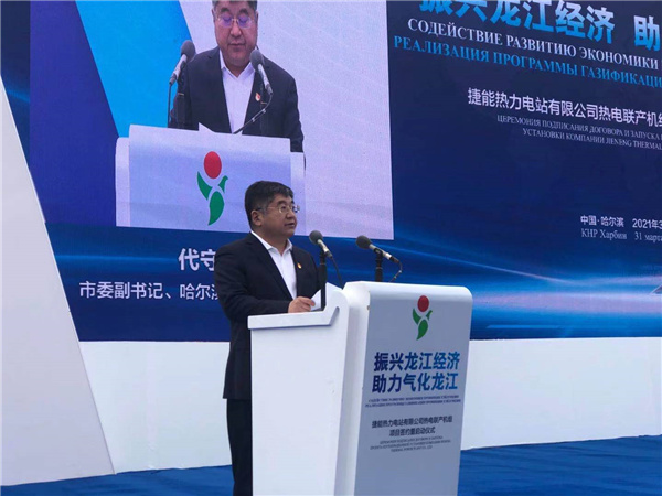 3月31日上午,捷能熱力電站有限公司在哈爾濱新區舉行燃氣熱電聯產機組項目簽約暨啟動儀式。該項目是哈爾濱新區首個推進的「氣化龍江」戰略重點項目,也是黑龍江省首例大型引用俄氣供暖的工程,擬納入今年的省百大項目。